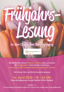 Am 16. April 2026 liest die Gladbecker Autorin Brigitte Vollenberg zu Gunsten des Hospiz-Vereins Geschichten zum Thema: