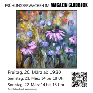 Traditionell eröffnet das Magazin Gladbeck und POTT IN FARBE die neue Saison mit einer Vernissage – und auch 2026 starten wir den Frühling mit Kunst, Farbe und Begegnung.