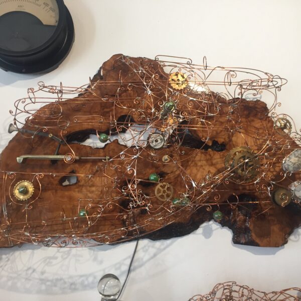 Ernst Heye’s Künste aus Drahtgeflechten erstaunen unzählige kreative Köpfe. Ohne vorherige Planung werkelt der gebürtige Dorstener mit Kupferdrähten phantasievolle Konstrukte. Erst bei der Umsetzung entwickle sich manches Kunstwerk zu dem, was es später ist. „Drahtart“: Kupfer, Konstrukte, Kunst!