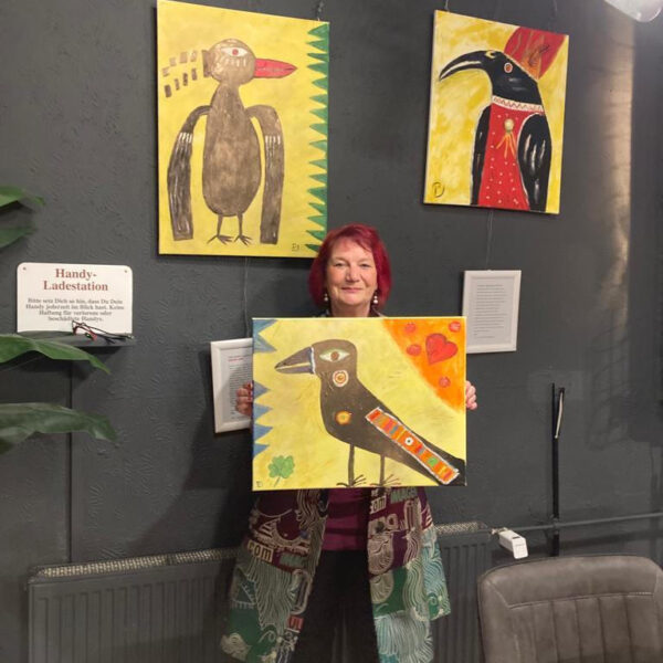 Petra Linzner, 62 Jahre jung, wurde in Würzburg geboren und lebt seit über 40 Jahren in Gladbeck. Ihre Kunst widmet sie den Rabenvögeln. Unter dem Label RAVENART malt sie ausschließlich Raben, Krähen und Dohlen.