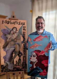 Sein künstlerisches Abenteuer begann im Frühjahr 2023. Inspiriert durch soziale Medien entdeckte OLKE die Malerei als Möglichkeit, Emotionen, Gedanken und Haltungen sichtbar zu machen. Erste Arbeiten entstanden mit Acryl auf Leinwand und entwickelten sich rasch weiter zu einem vielfältigen Portfolio aus abstrakter, gegenständlicher, popkultureller und surrealer Bildsprache.